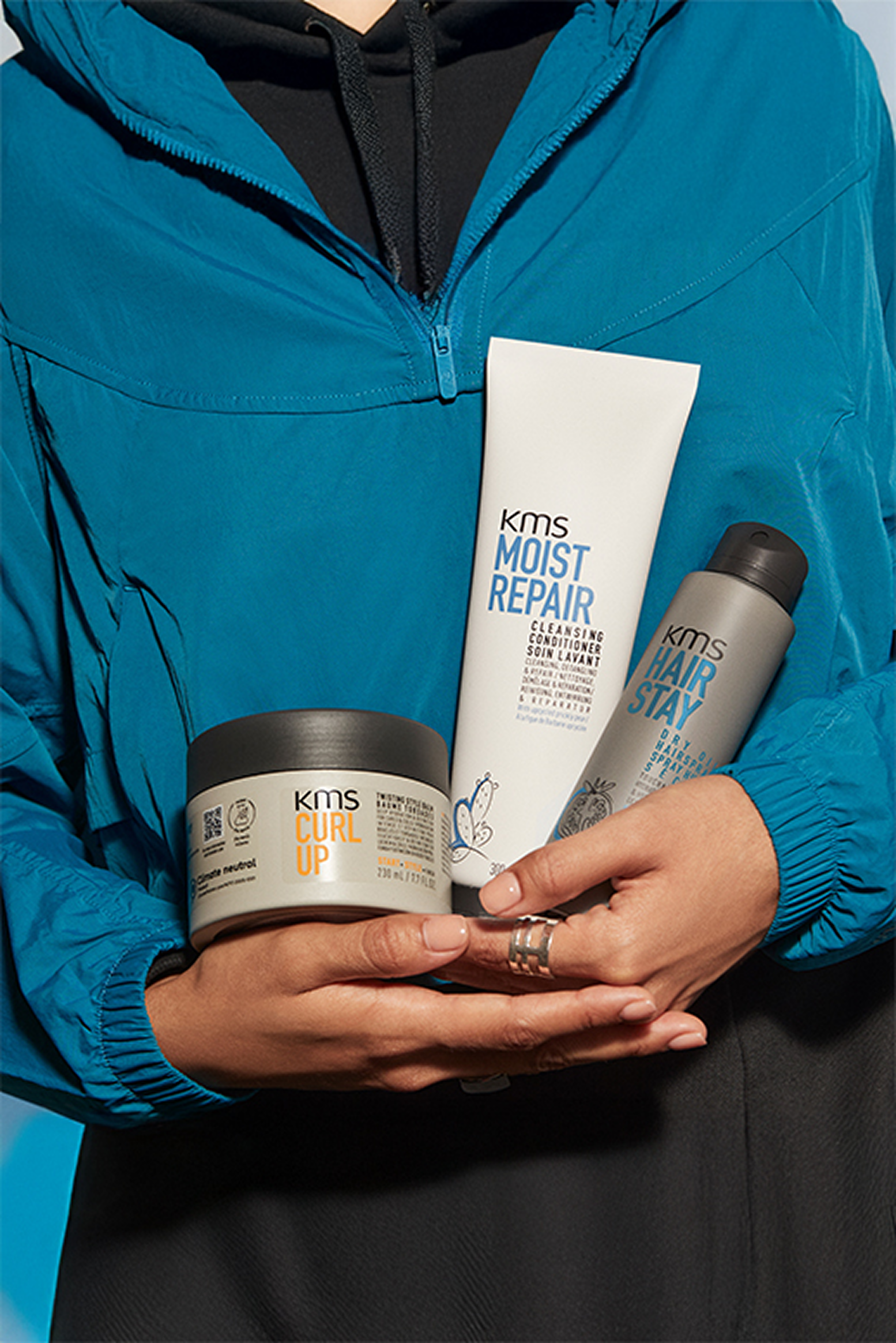 Warm 1-2 pumps of oil in the palms of your hands. Start with less and add more if needed.